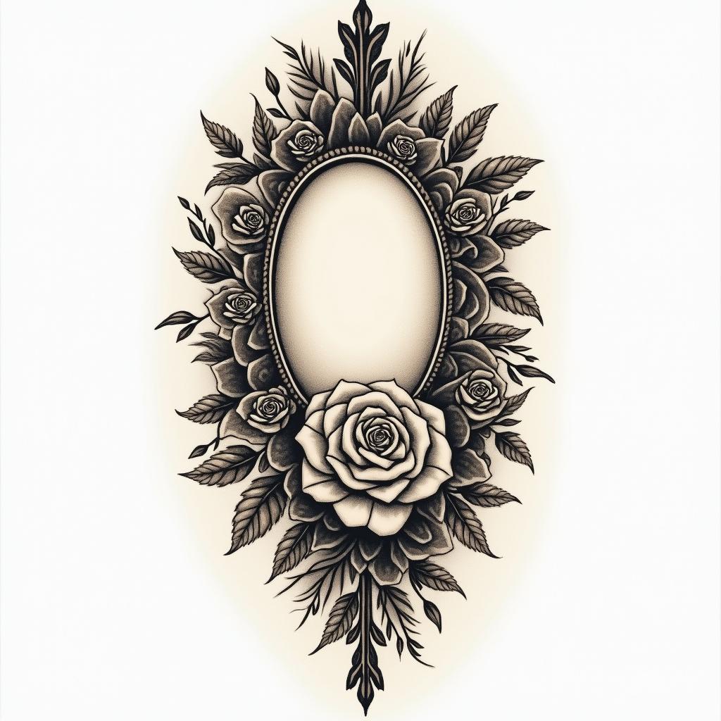 Armband for womenin victorian style tattoo, featuring vintage and elegant elements, ornate frames, roses, antique, sepia-toned color scheme