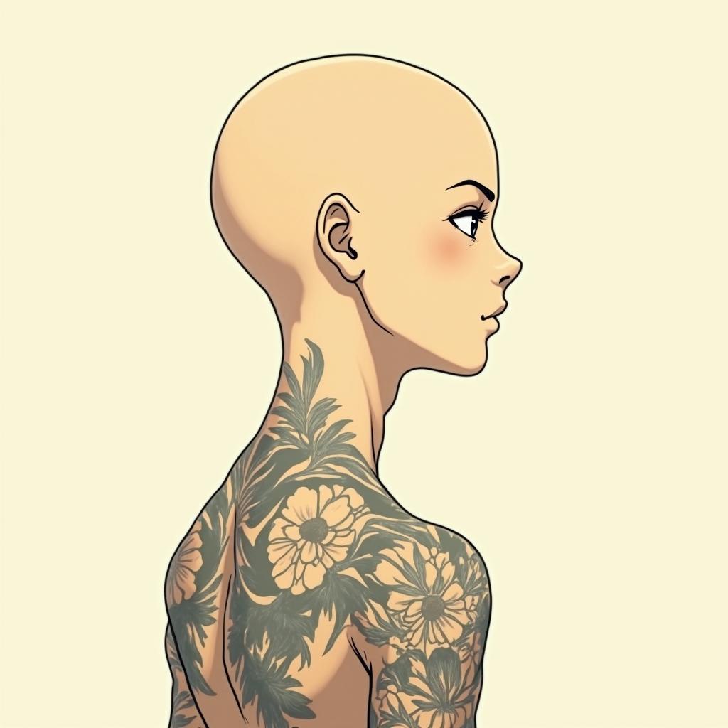 ChelseaGhibli, Studio Ghibli aesthetic, hand-drawn anime style, retro nostalgic atmosphere, retro soft pastel color palette with earthy tones, retro Japanese cinematic shot, yellow tint effect, bald character, smooth surface, anime shadow 90's anime style
