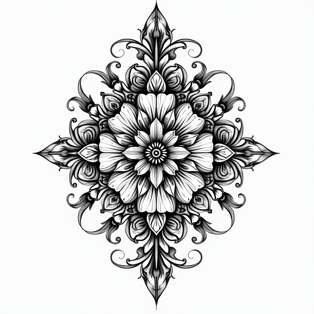 Mandala tattoos are intricate designs that often symbolize balance, eternity, and perfection. Originating from spiritual traditions, they are popular for their detailed geometric patterns. Common placements include the back, arms, and thighs. Use our AI generator to create a personalized Mandala design.